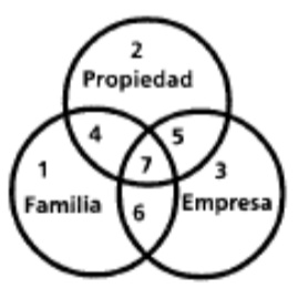El sistema de empresa familiar es complejo y distinto a una empresa no familiar porque involucra; FAMILIA-PROPIEDAD EMPRESA por esa razón sólo el 13% de ellas llegan a la tercera generación. Entendamos el modelo de los tres círculos en donde se destacan siete posiciones diferentes, así tendremos: